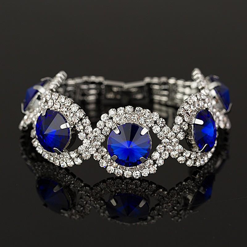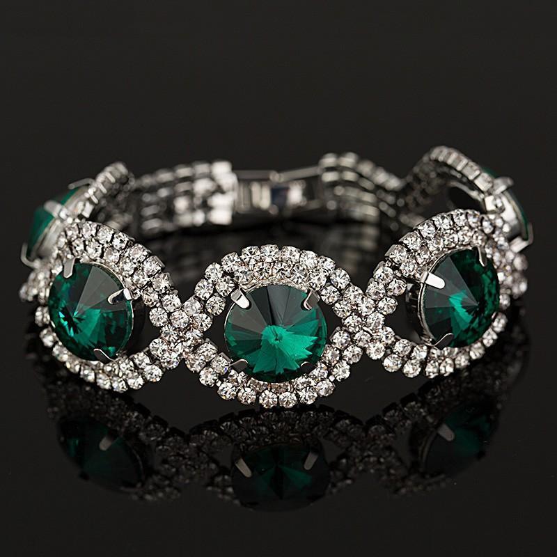 Elegance meets fabulous with this fun and flirty pavé crystal slider bracelet. Available in silver-blue, gold-blue, silver green and gold green.